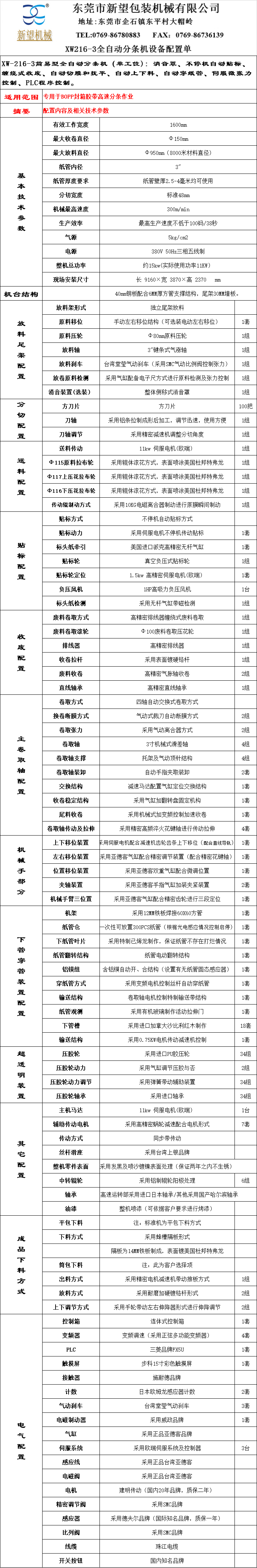 XW-216-3簡易型全自動分條(單工位)關(guān)鍵技術(shù)詞:消音罩、不停機自動貼標、纏繞式收廢、自動切膜和撫平、自動上下料、自動穿紙管、伺服微張力控制、PLC程序控制。